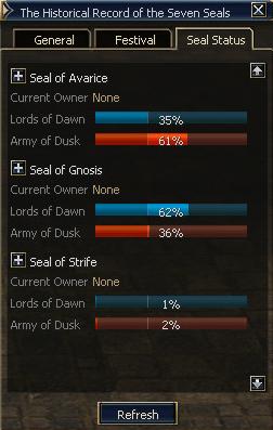 В борьбе за обладание силой Семи Печатей (пока только трех) участвуют 2 стороны - Революционная Армия Заката (Revolutionary Army of Dusk) и Лорды Рассвета (Lords of Dawn). Чтобы принять участие в борьбе за Семь Печатей игрок должен примкнуть к одной из сторон на период борьбы. Выбрав одну из сторон, перейти за другую сторону будет невозможно, пока не начнется новый виток борьбы через 2 недели. Также в момент выбора стороны, игрок должен выбрать печать, за которую он будет бороться.